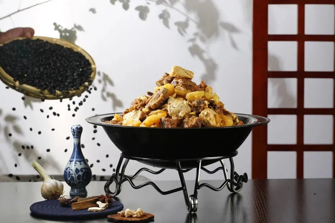 “猪鸡混咬”的别样滋味,让肉勾鸡成为河套地区的特色菜。主料肥猪肉和鸡肉,肥厚的猪肉弥补了鸡肉较瘦的缺点,这样的绝配,使鸡肉松软猪肉肥而不腻,如果再配上土豆、贴上和好的发面饼,经过慢火炖焖,一锅色泽红亮,浓郁鲜咸,肉香饼筋,肉、菜、饼、合一的风味菜让你尽情体验味蕾兴奋的幸福时光。一锅香味四溢的肉勾鸡,便是河套人待客必备的乡亲味道。