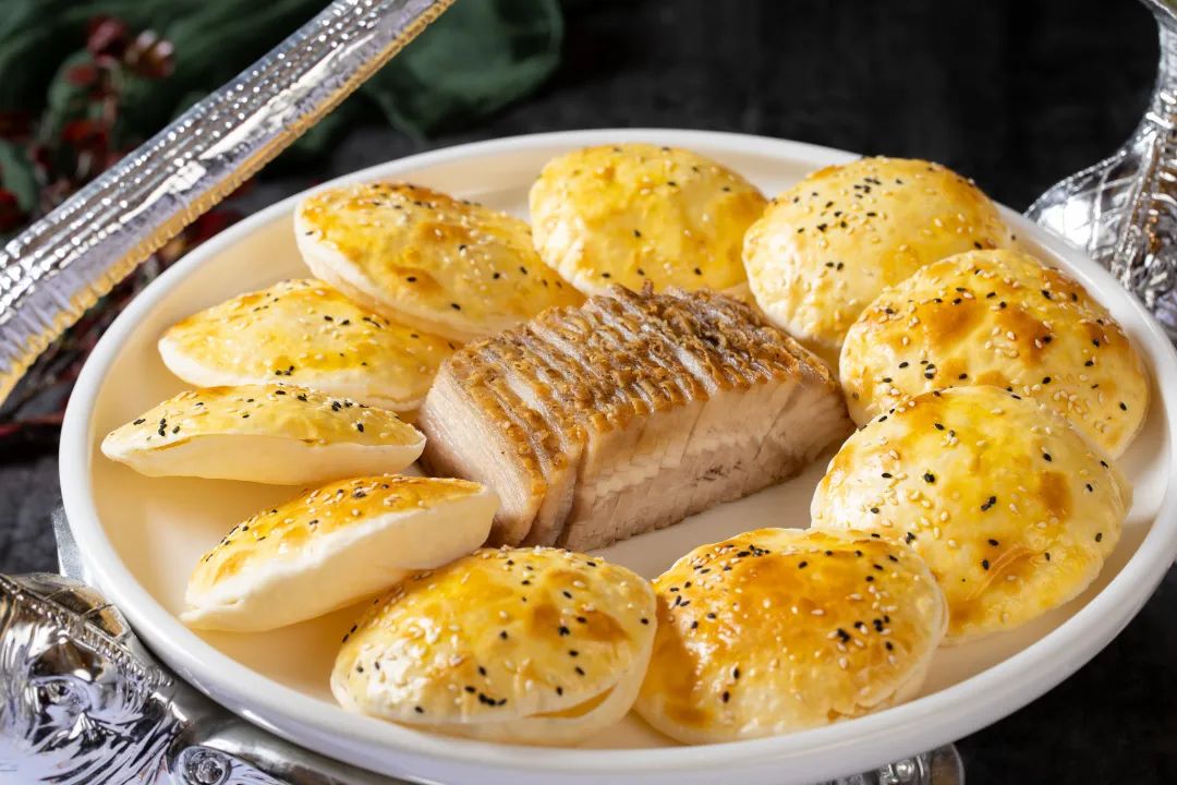 烤方子,被称为内蒙古烤菜之魁首,是 “ 蒙餐创始第一人 ”吴明大师上世纪四十年代,在绥远将军衙署为傅作义、董其武做私厨时研制的。烤方子选料精细,用三层五花肉腌制入味,水煮去皮后,再烤制两小时以上。色泽金黄、不油不腻、肉味醇香、酥软丰润。切片配食葱丝、黄瓜丝、萝卜丝、秘制酱料、薄饼。方肉蘸酱,薄饼卷食,口感多元,味道丰富,满口生香 ,余味悠长,堪称呼和浩特传统菜的经典。