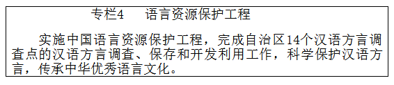 推进语言文字工作。繁荣发展少数民族语言文字,普及国家通用语言文字,科学保护汉语方言文化。实施农村牧区推普攻坚工程,加快提高国家通用语言文字普及率。开展三类城市语言文字评估。实施学校语言文字达标验收工程,深入推进学校语言文字工作。广泛开展中华经典诵写讲活动,传承和弘扬优秀传统文化。