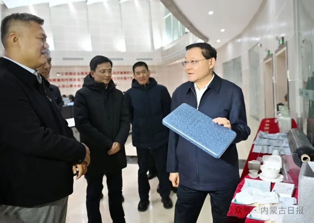 11月18日,自治区党委书记王伟中来到内蒙古东源科技集团有限公司,了解工艺流程和企业生产经营情况。草原云·内蒙古新闻网记者 马建兵 摄